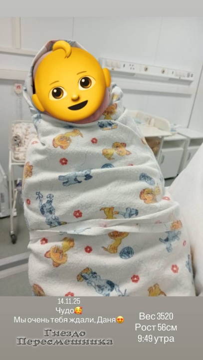 Роды произошли раньше срока: накануне у Татьяны диагностировали ковид, и её экстренно госпитализировали. Сейчас молодая мама находится в реанимации под наблюдением врачей, но, по её словам, сами роды прошли благополучно.